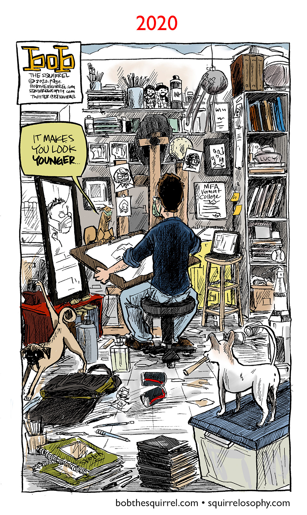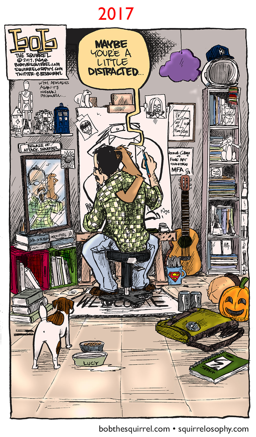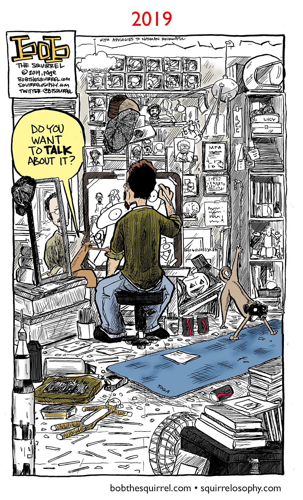 I started an annual thing where I pay tribute to Norman Rockwell's "Triple Self-Portrait".